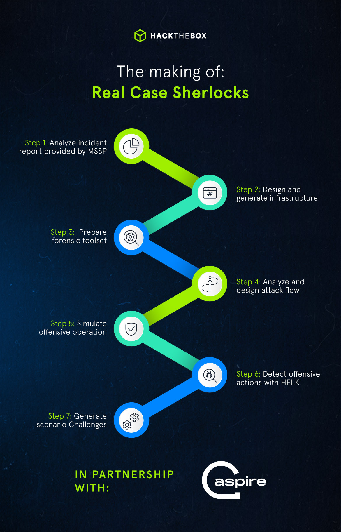 Real Case scenarios emulate an incident shared by leading Managed Security Service Providers (MSSPs) directly with Hack The Box.